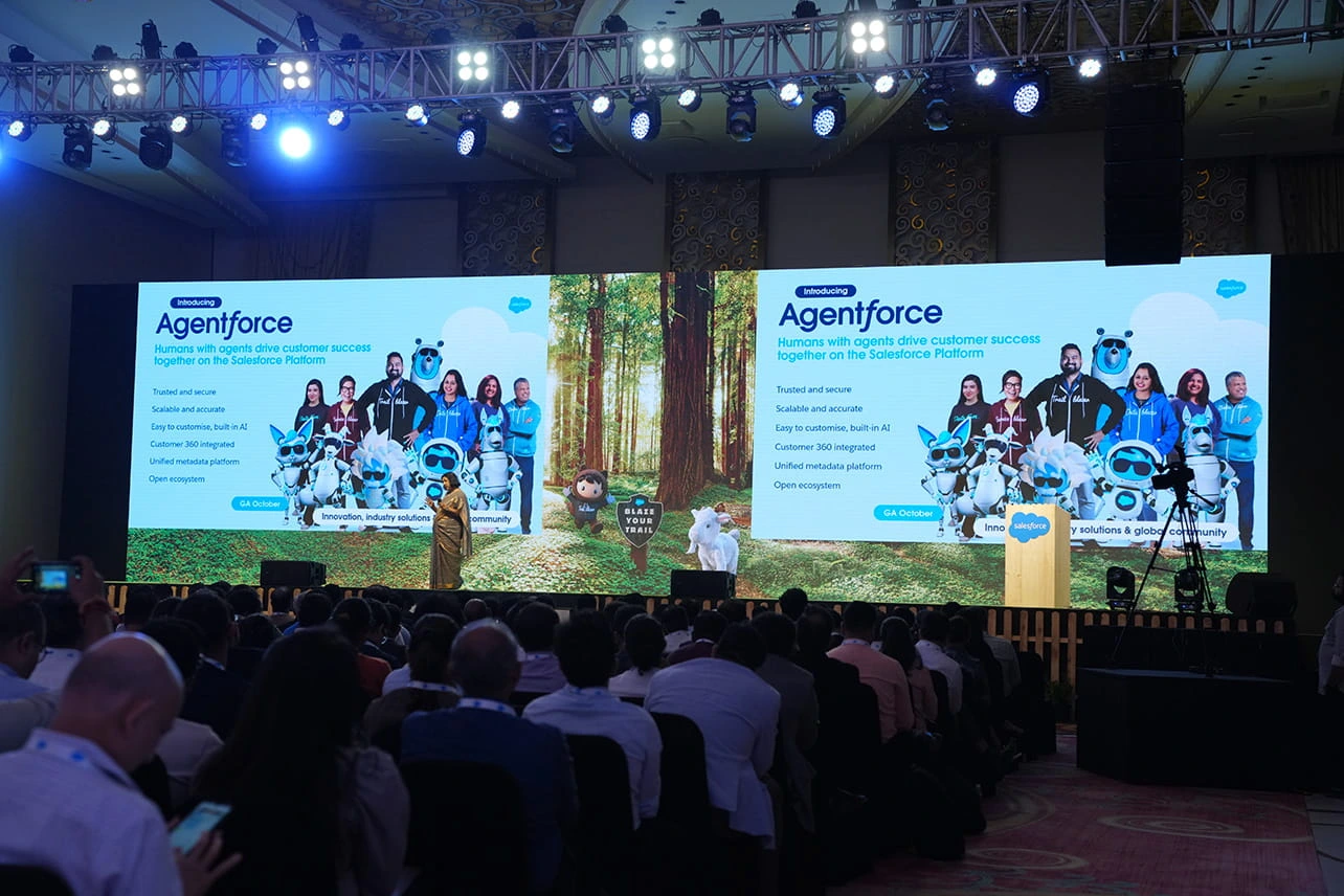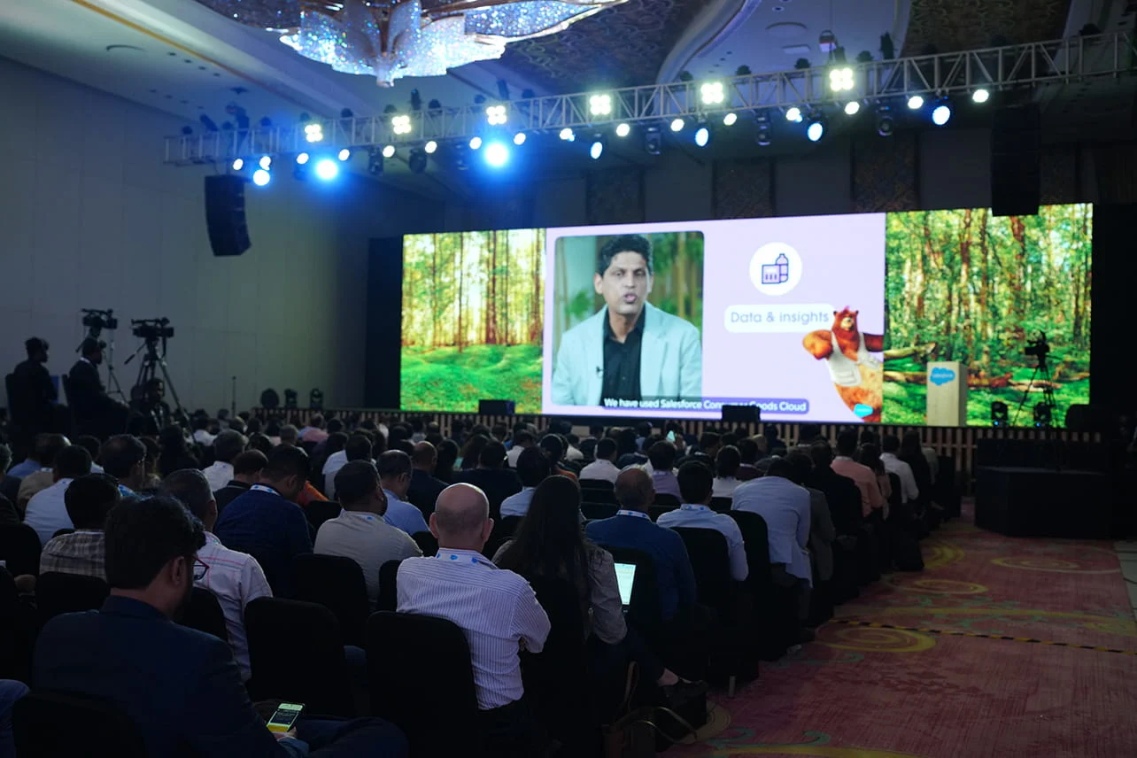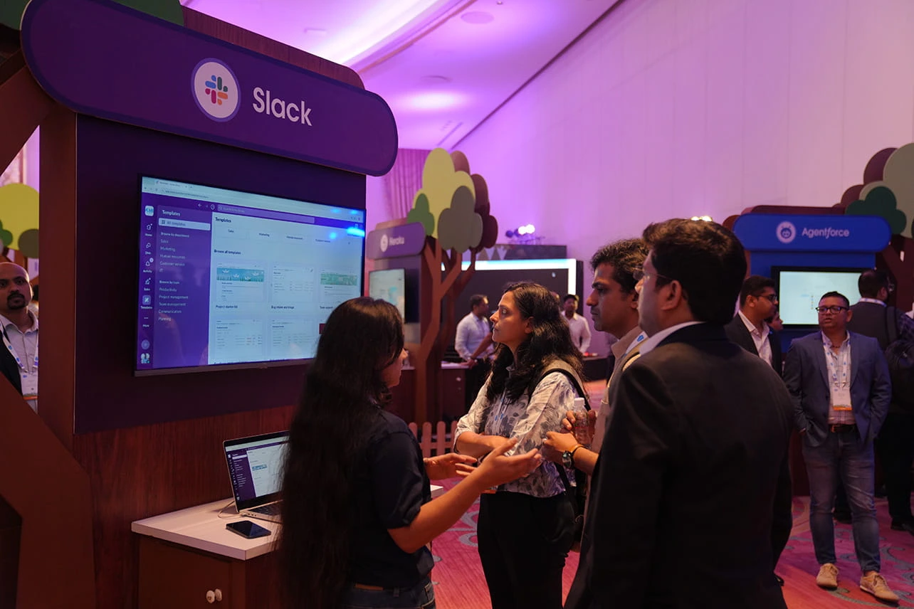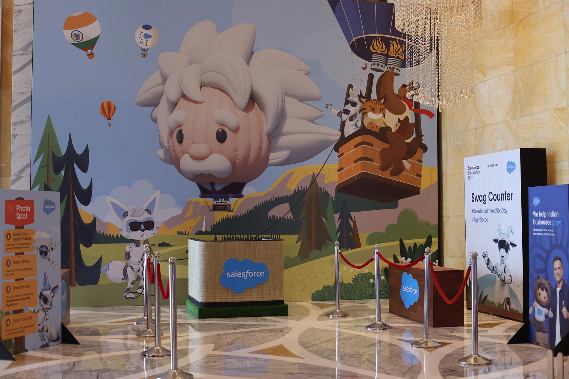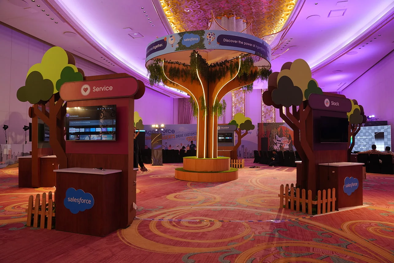 We transformed the venue into a layered, nature-inspired space, complete with a 360° central tree, thematic zones, and familiar Salesforce icons woven in with subtlety and care. It felt playful, but purposeful. Branded, but not overbearing.